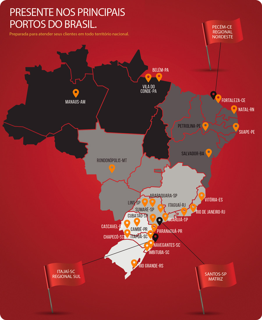 Headquartered in Santos and 26 branches throughout Brazil, we have a technical team of over 400 professionals working in the most diverse types of services.