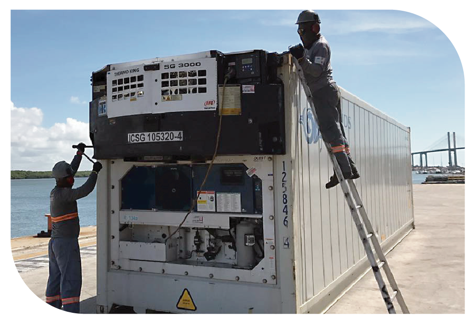 | Monitoring before/after loading Reefebras infrastructure enables the monitoring of refrigerated containers through a data collector enable during the time the unit has been stored in terminals. This data is then transmitted to the client, providing our Clients tranquillity towards the good working conditions of their equipment. |